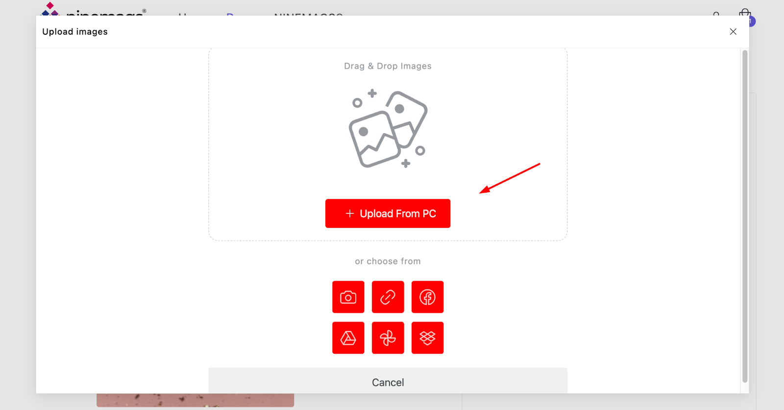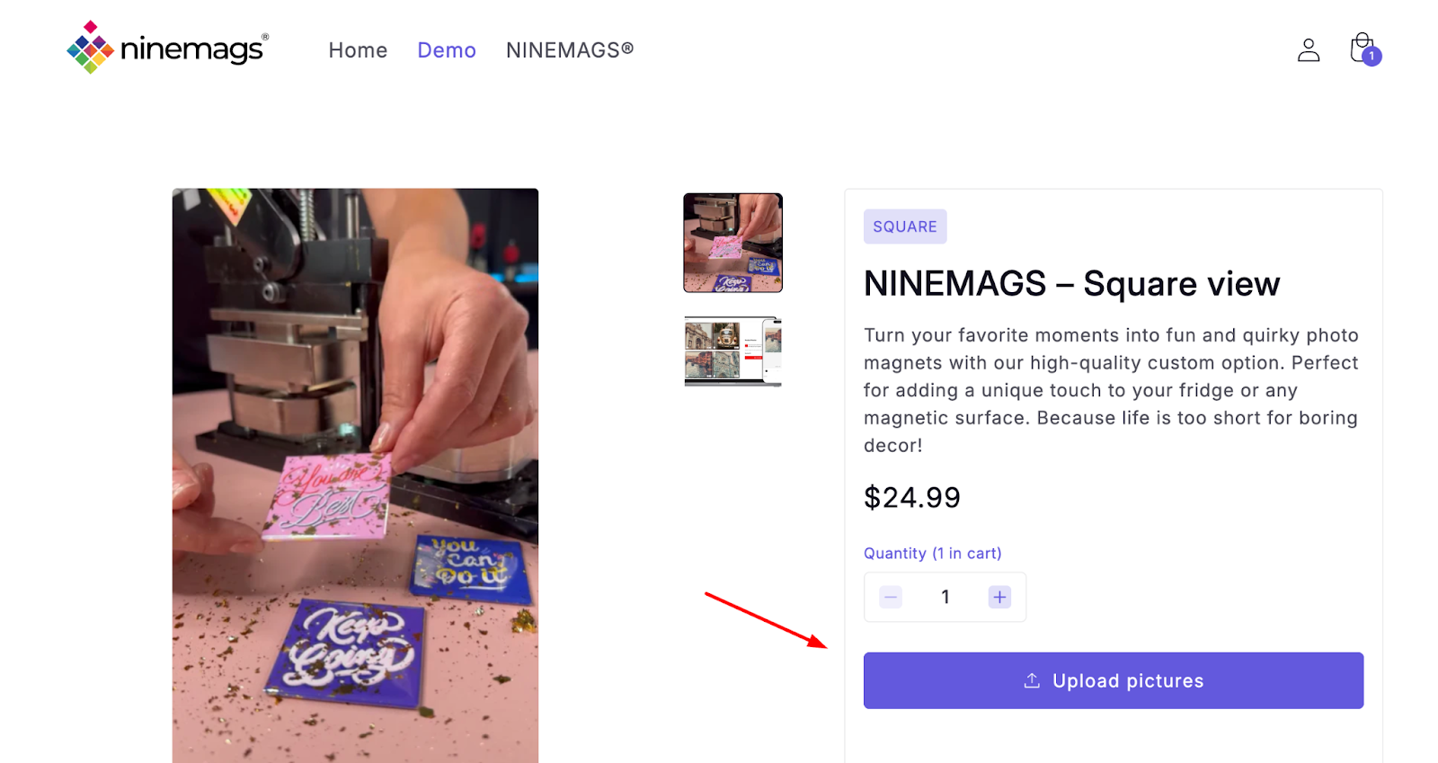 Once NINEMAGS is installed, a special upload block appears directly on the product page.