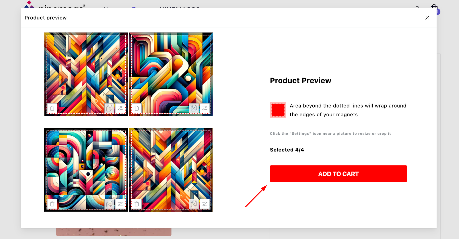 Photo upload is the step where customers add their images to create a custom photo magnet after NINEMAGS is installed.