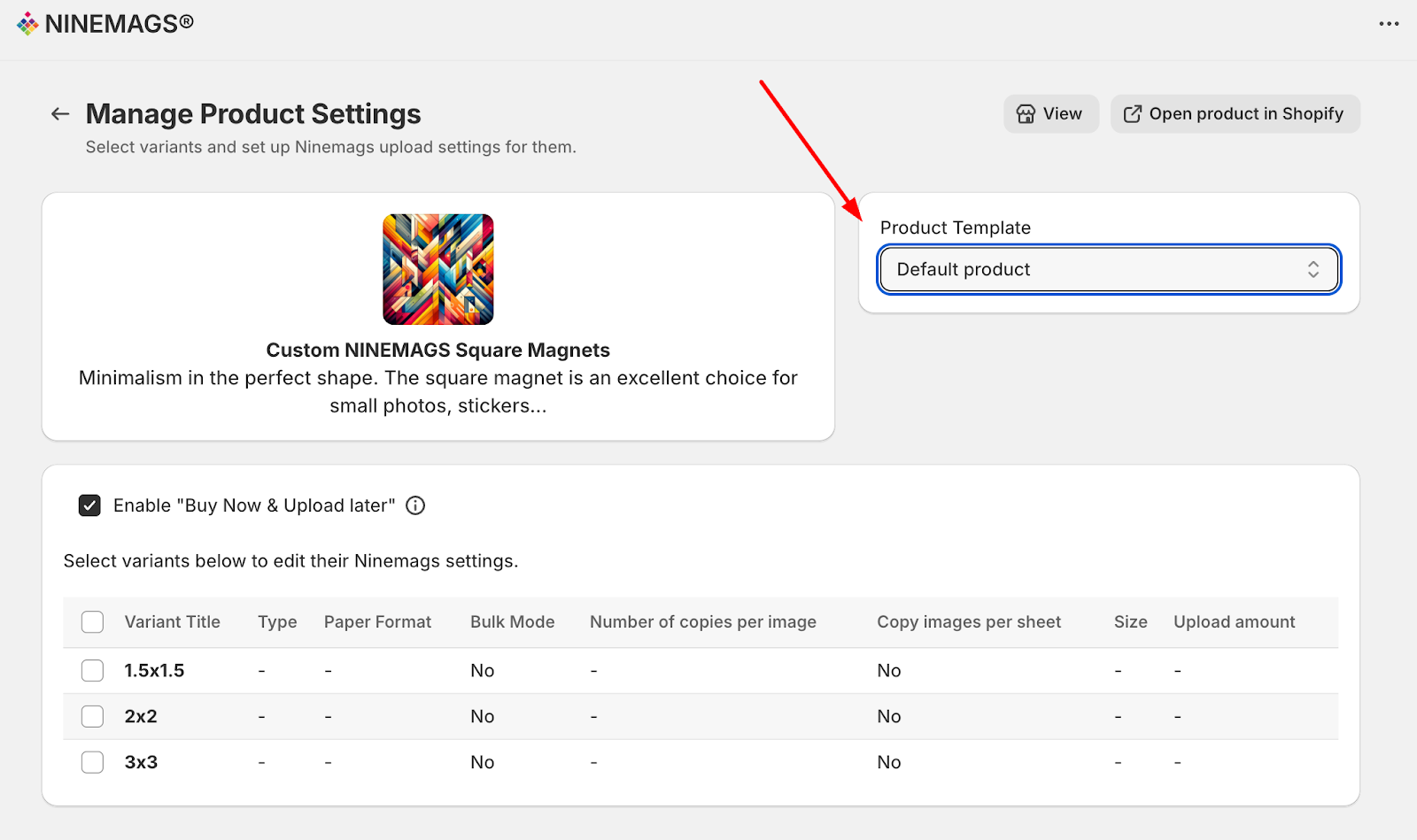 After selecting the product, you will be taken to the Manage Product Settings page.