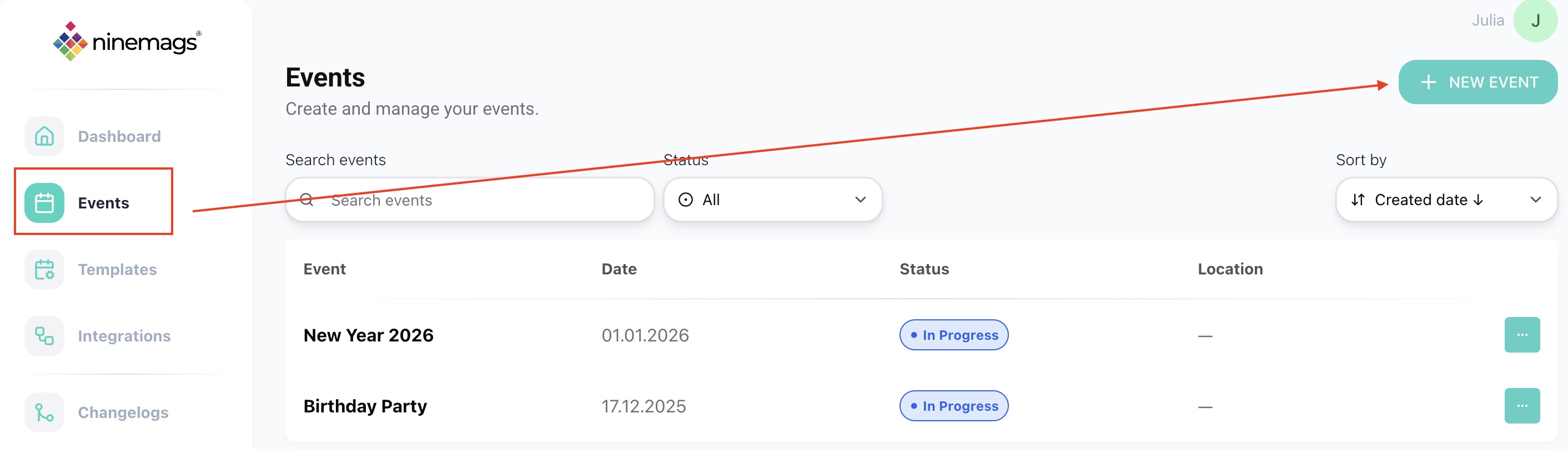 - Click New Event in the top-right corner.