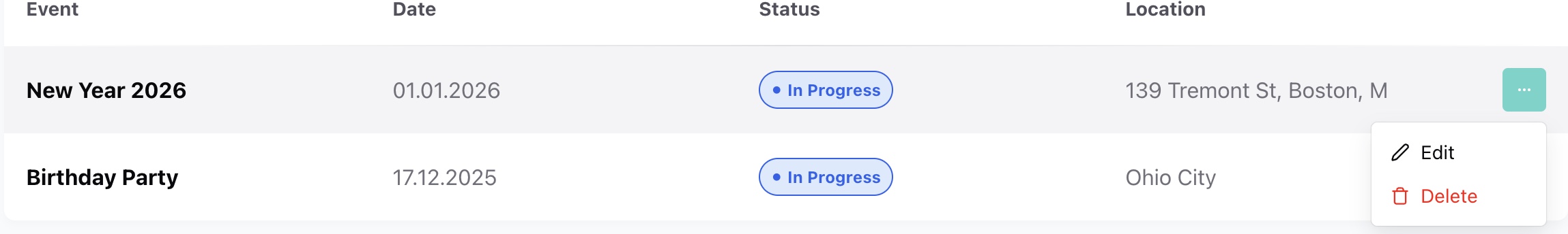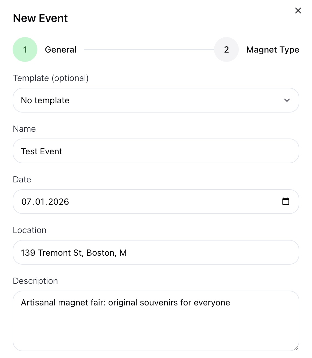 - Location — event location or venue (optional)