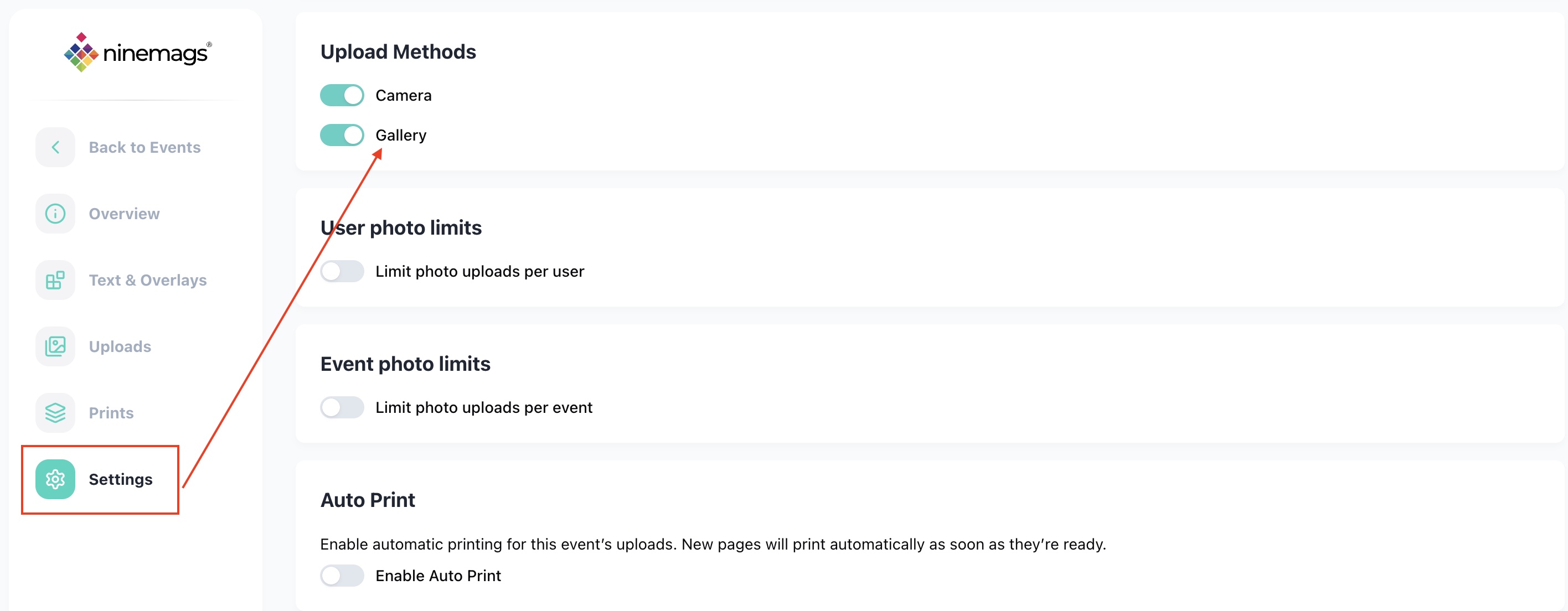 This guide explains how to control how guests can upload photos to your event — using the camera, the gallery, or both.